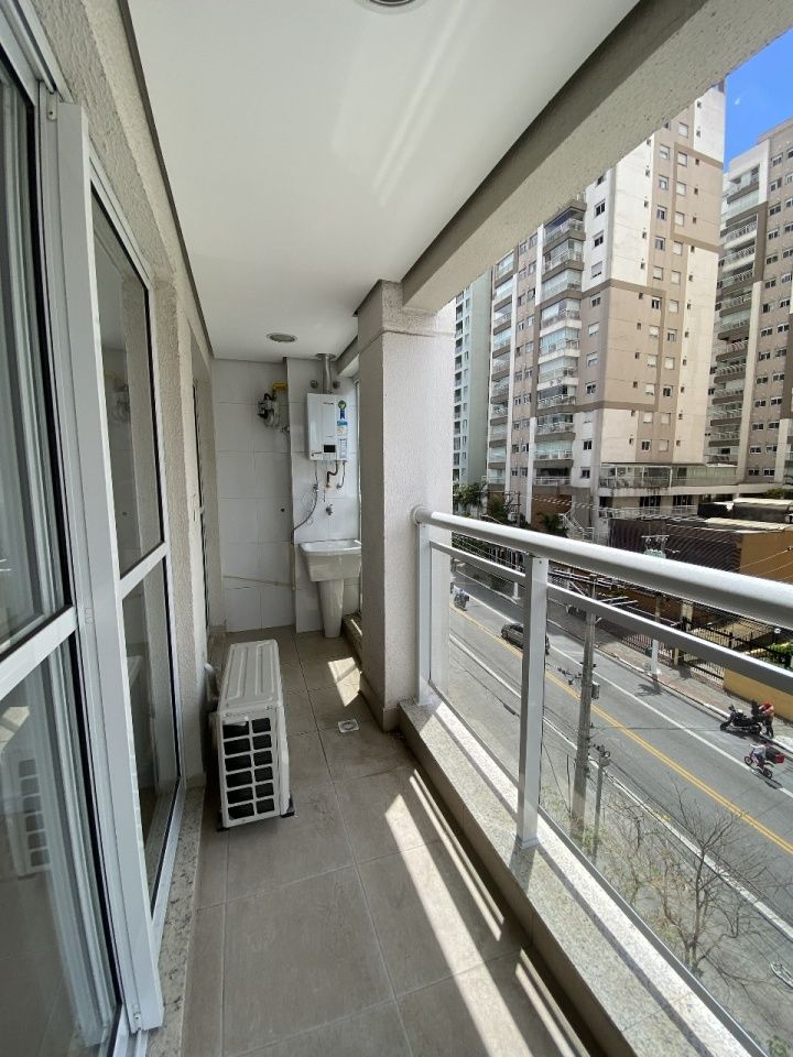 Apartamento novo e reformado, com 42m², 2 banheiros, ar condicionado, aquecedor a gás, cozinha com água quente, fogão e armários, ampla sacada com lavanderia e ponto para máquina de lavar. O condomínio dispõe de salão de festas gourmet, jacuzzi, academia, piscina adulto e infantil.