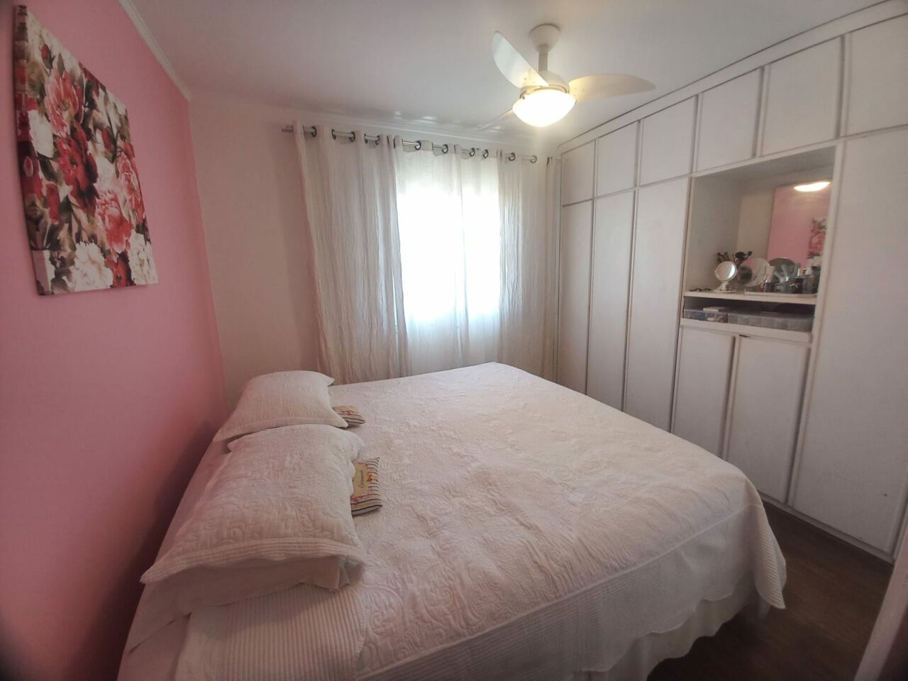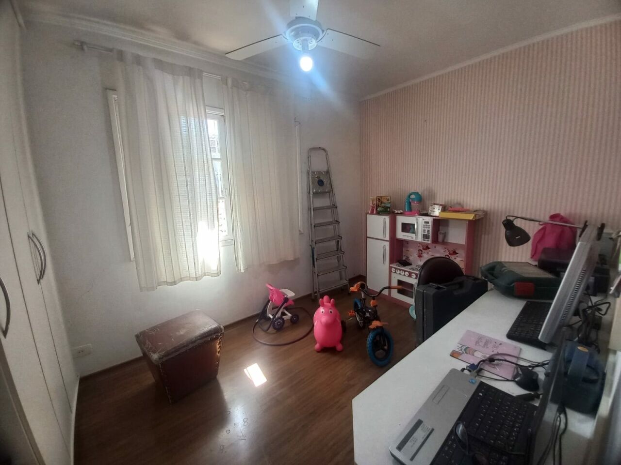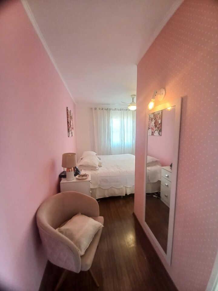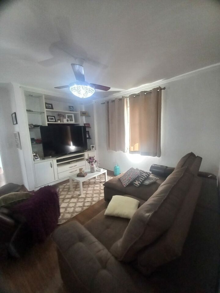 Sobrado com 2 Suítes, sala para dois ambientes, sala de TV, armários na cozinha e dormitórios, com piso laminado.