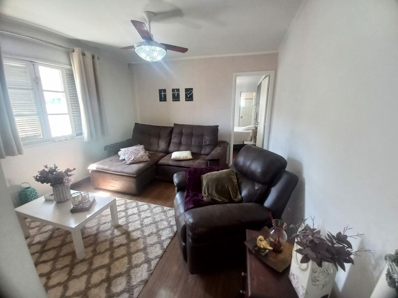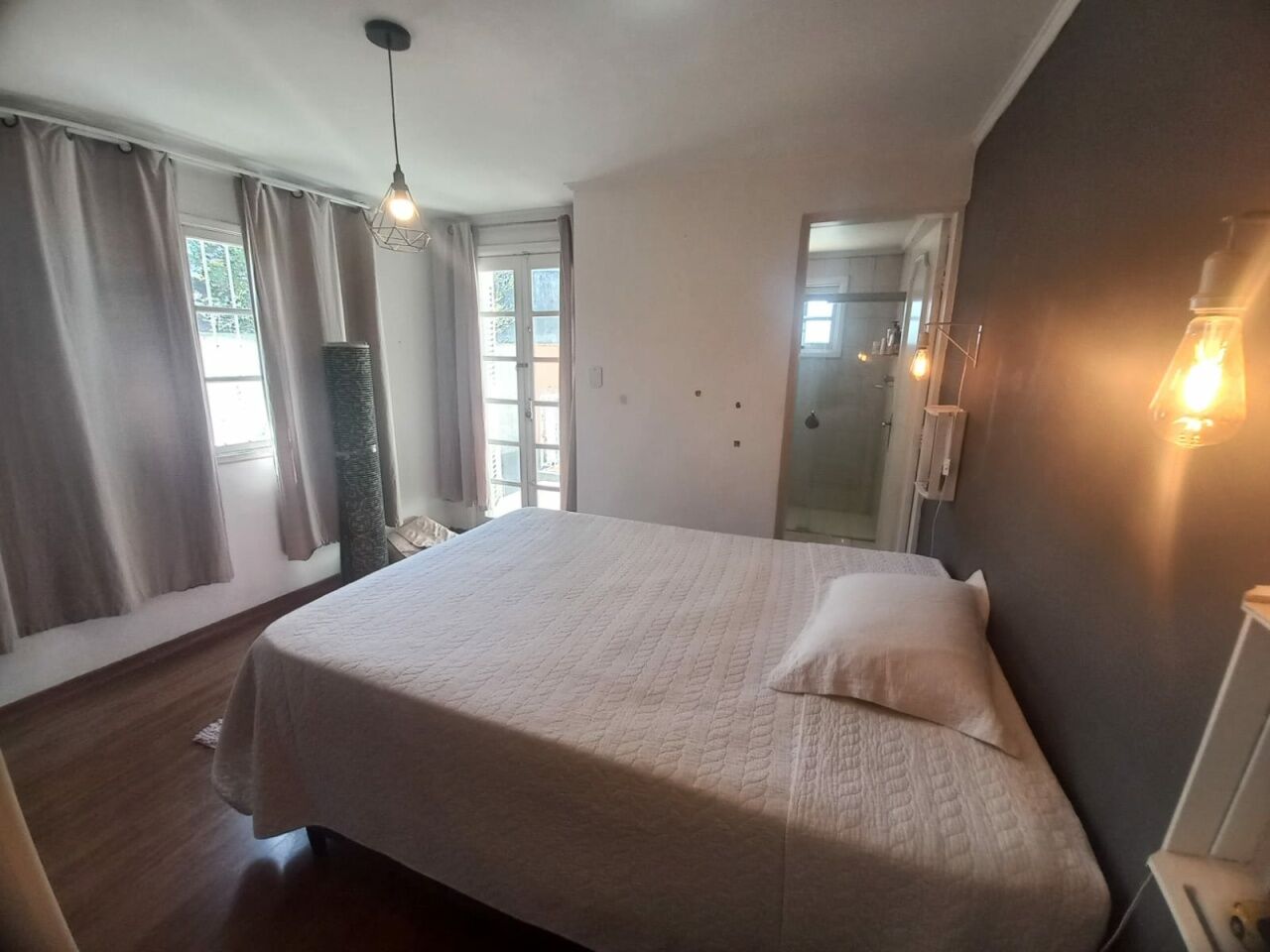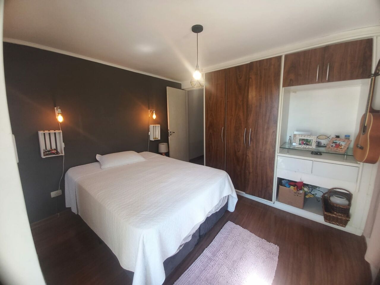 Sobrado com 2 Suítes, sala para dois ambientes, sala de TV, armários na cozinha e dormitórios, com piso laminado.